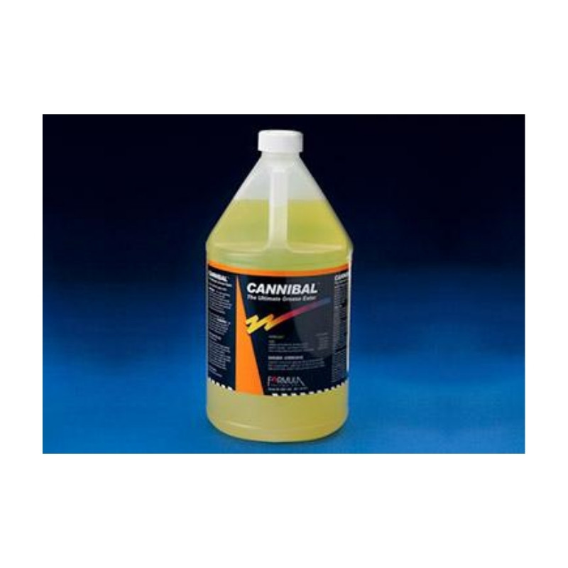 Specially formulated acid based cleaner to removes baked on residues from iron, stainless steel, ovens grills pots pans. Concentrated product needs to be thinned before use. Thin with water. Use 1 part of Cannibal with 30 parts of water, Let this solution soak on the area to be cleaned. It will penetrate the residue and dissolve it. Clean with rag and then rinse with water. Class 8 Hazmat shipping code.