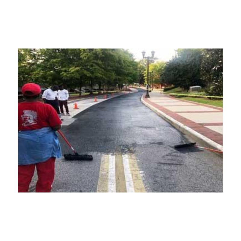 Formulated and manufactured at USSC main manufacturing location in Alpharetta GA, this well formulated, thoroughly tested premium quality asphalt coating, black top seal coating supplied as ready to use. No thinning or addition of sand or aggregate is needed. Just blend the product thoroughly and apply. It is fortified with special acrylics, rubber polymers and aggregates to yield a strong durable, anti skid, flexible water proof asphalt coating / sealer. It can be applied over 1 inch thick wide cracks. This coating will cure over-time and will not crack and will stay flexible. Two coats may be needed in certain applications. Severely damaged and cracked asphalt can be repaired and protected. Being water based it is non flammable, non toxic. Dries fast and will not track. Depending on job requirements and budget, we offer several grades of Asphalt Sealers / overlays / coatings.