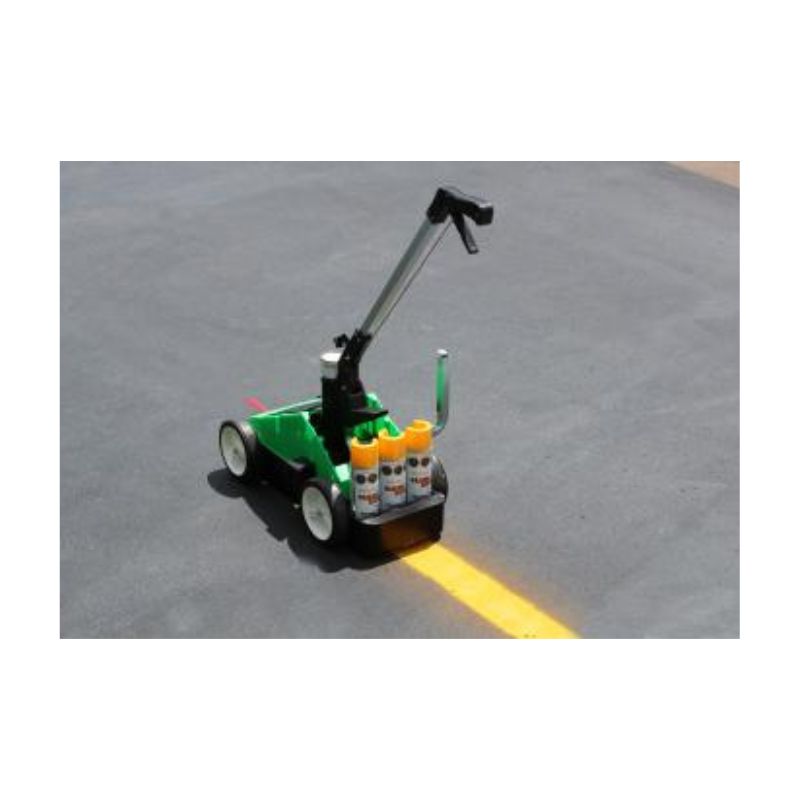 East to use extremely DURABLE aerosol traffic line marking paint and striping machines. Cans will empty completely, will not clog. Just shake the aerosol cans till the ball rattles and minute after that. Install the can in striping machine, actuate the trigger and mark sharp, durable traffic lines. Available in White, Blue, Red, Yellow, Orange. Spray width can be adjusted from 2 to 6 inches. Striping machines are designed for smooth operation and roll with a side arm accessory to mark curbs.