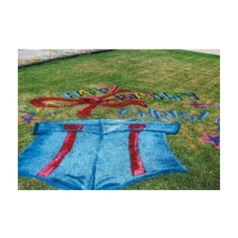 Let us know what you want to paint on your home yard or business lawn. Team name, Team Logo, Team Initials, Mascot, Letters, Festival Name, Event Name, Tournament name, Custom Image, Message, Art, etc. Our graphic design department can help you design it. Once approved, we ship you a custom cut stencil template that you can easily use to safely paint a logo on your residential lawn or business grass yard.